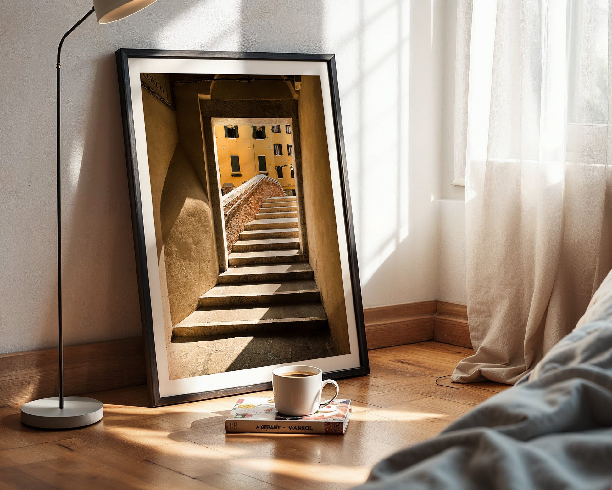 In the quiet corners of Venice, light and shadow dance across worn stone steps, leading to sunlit facades and timeless archways. Le Scale di Venezia captures the magic of wandering through hidden passageways, where every turn reveals a glimpse of the city’s storied past.