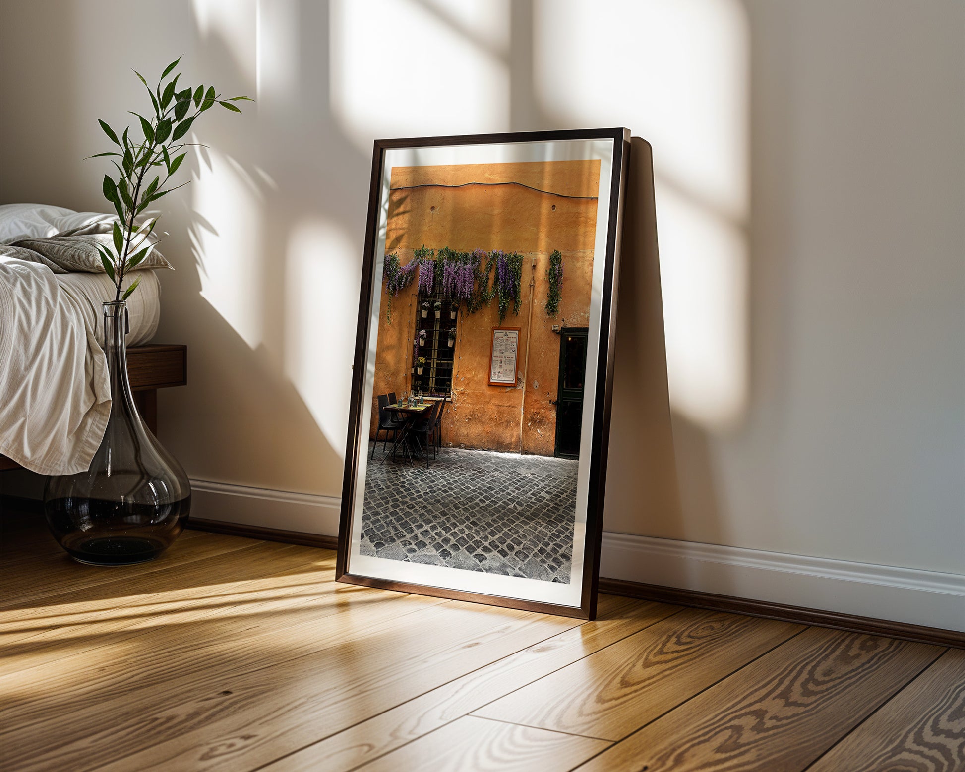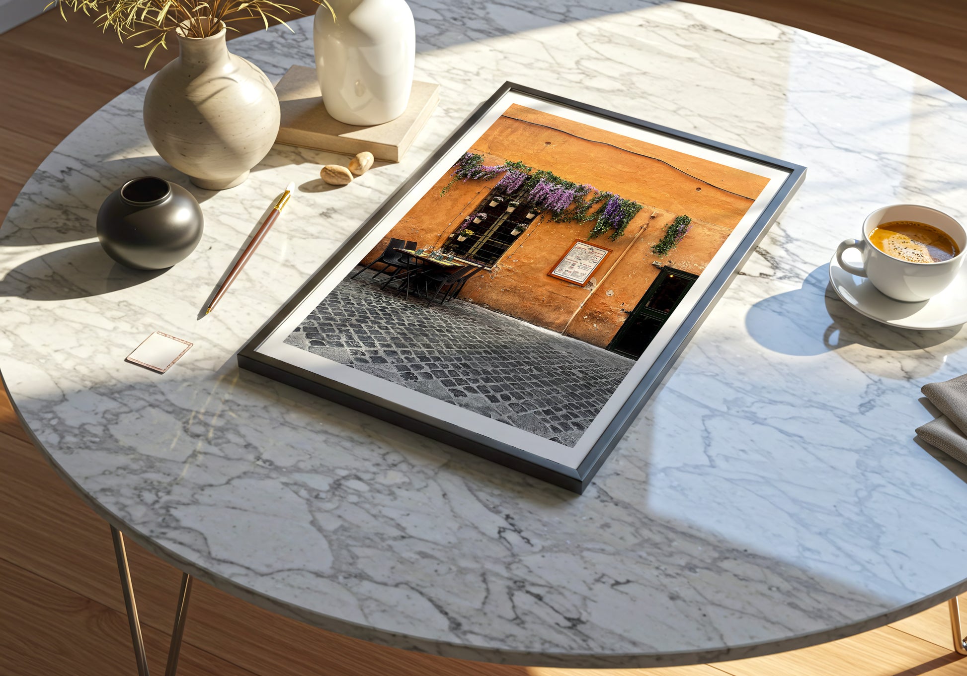 Tucked away in the heart of Rome, Via Bocca di Leone is a quiet escape where time slows. Wisteria drapes lazily over a sun-warmed ochre wall, framing an intimate outdoor table set for an evening of leisurely dining. A glimpse of la dolce vita, where beauty is found in the simplest moments.